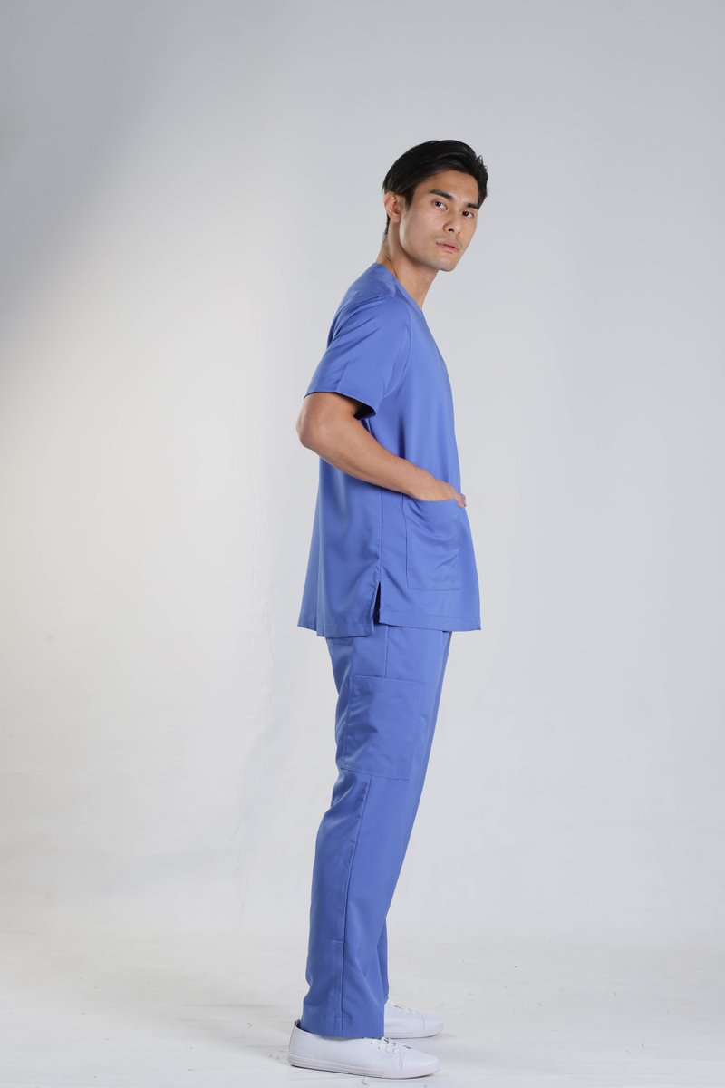 Drawstring scrub pants with patch pockets on thigh