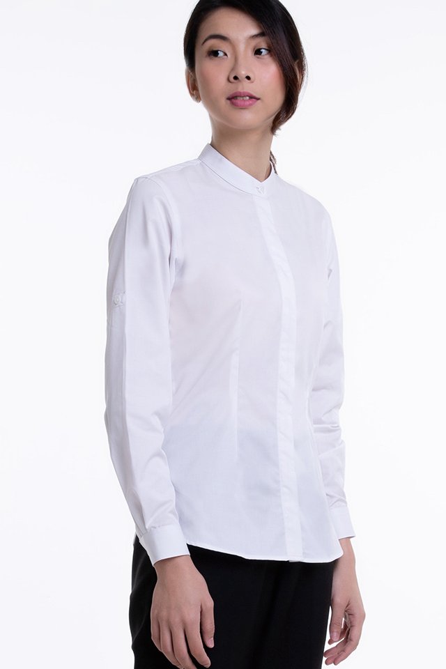 Ladies Long Sleeve Mandarin Collar Blouse (FHA-18112)